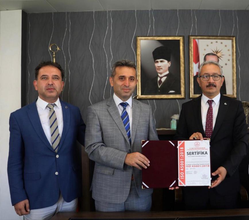 Millî Eğitim Bakanlığı Belgelendirme Hizmetleri Yönergesi kapsamında okullarda ulusal/uluslararası standartlarda belgelendirme faaliyetleri yürütülmektedir. Kalitede öncü kurum olan Mehmet Sinan Dereli Ortaokulu olarak kalitemize kalite katmayı vizyon edindiğimiz için TS ISO 45001:2018 İş Sağlığı ve Güvenliği Yönetim Sistemi'ne başvurmuştuk. Okulumu Türkiye'de 8 ortaokuldan biri ve Kocaeli'de bu belgeyi almaya hak kazanan tek okul oldu. Bu belgelendirme sürecinde Okul Müdürümüz İsa DEDE koordinasyonunda başta proje yürütücümüz Yaşar TEMEL Öğretmenimiz ve ekipte yer alan Müdür Yardımcımız İlknur PALA, Aysun KOÇYİĞİT, Murat AYDIN, Çiğdem TUNCER ve Serkan DOĞRUL'a ; süreçte yanımızda olan sevgili Hakan YAMAN'a tüm emekleri için çoook teşekkür ederiz.Sertifikamız İl Milli Eğitim Müdürümüz Ömer AKMANŞEN tarafından hepimizin adına Müdürümüz İsa DEDE'ye takdim edilirken...